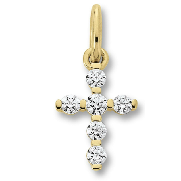 Zirkonia Kreuz Anhänger aus 333 Gelbgold